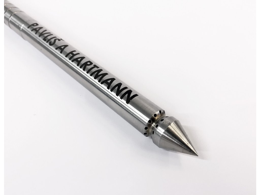Hasicí hřeb útočný se skládá z tělesa hřebu z nerezové oceli, z hrotu, který má po obvodu proti sobě na každé straně 12 děr o průměru 1,6 mm, kulového uzávěru a vtokového hrdla, které je osazeno Ms spojkou D25 na tlak 40 barů.